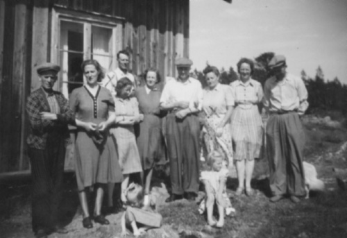 Sökord: gruppbild, män, kvinnor, byggnad, hus, häst, lada, slåtterarbete Motivkategori:gruppfoto Id:13576 Fotograf: okänt Fotoår: 1930-tal Bildnummer: rutj-124 Förening: Enångers hembygdsförening Land: se Motivplats: Gävleborg, Enånger, Holmen Teknik: inskannat foto Rättighet: privat Originalplats: (visas ej publikt)