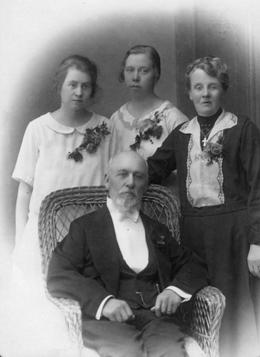 Bildtext: Ada Johansson (från Rössånger) med barn och deras familjer. Främre rad fv: Anni Westling, Kerstin Bergström, Bibbi Westling, Maj-Britt Johansson. 2:a rad: Stig Johansson, Ada Johansson, Yngve Westling, Eje Bergström, Håkan Bergström (skymd). 3:e rad: Gunnar Johansson, Gunhild Löjdström, Elin Johansson, Märta Bergström. Övre rad: Hilma Edbrink, John Edbrink, Astrid Westling, Otto Bergström, Sigfrid Löjdström, Johan Westling