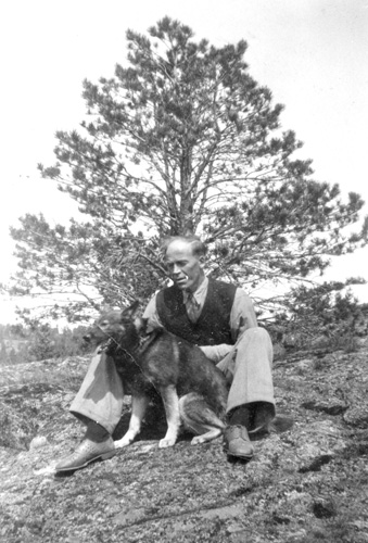 Bildtext: Vy från Borka med Fonkhälle, Axel Enboms gård i centrum, okända pojkar.