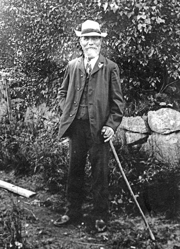 Bildtext: En ung Sigvard Bäcklund(i 15-års åldern?) underhåller på trappan till en stuga någonstans. Lyssnarna okända.