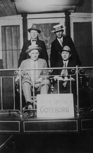 Bildtext: Kort från (JG) Jonas Gustaf Baggströms (1874-1963) 75-års dag 1949. Barn,sonhustrur, mågar och barnbarn samlade på trappan i Haga. Övre raden: Valborg Baggström (Gösta) Elin Baggström, Anna Baggström, Märta Baggström (Axel), Axel Baggström, Lasse Hellström (Signe), Gösta Baggström. Mellanraden: Martin Johannisson,(Kristina) Catarina Johannisson, Kristina Johannisson JG, Karin Baggström Erik Baggström. Barnen: Eva Baggström, Jonny Baggström, Sune Baggström, Bertil Baggström,Kerstin Hellström, Birgitta Baggström och Ulla Baggström