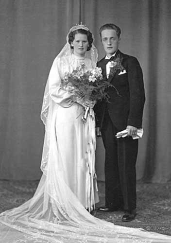 Sökord: brudpar Motivkategori:bröllop Id:10148 Fotograf: Undén Fotoår: 1940 Bildnummer: MAR-A-012 Förening: Enångers hembygdsförening Land: SE Motivplats: Gävleborg, Hudiksvall Teknik: inskannat foto,11x16 Rättighet: privat Originalplats: (visas ej publikt)