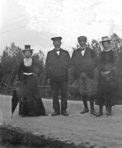 Bildtext: Gruppbild i okänd miljö, släktskap kan finnas med Enångerssläkterna Ville Westling och/eller Rosin. Vissa namn finns noterade: 1 fru Anna Glad, 2 Ante Glad, 3 Anny Andersson, 4 Karl Berg, 5 fru Sallu Ersson(?), 6 Ragnar Jernström, 7 fru Edit Skalman, 8 Marta Eriksson, 9 Ruben Karlsson, 10 Agda Andersson, 11 Marta ”i Backen” Eriksson, 12 Elisabeth Johannesson, 13 Lars Brandt, 14 Johan Hamrin, 15 Alma Johansson, 17 Olle Glad, 18 Anna Karlsson, 20 Nisse Wahlström, 21 fru Hilma Glad, 22 fru Sundström