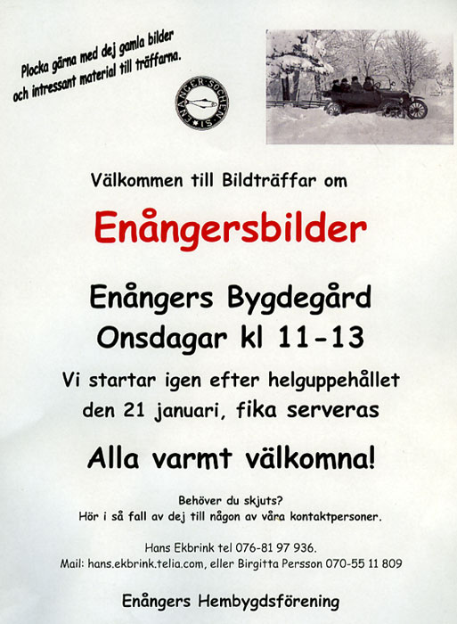 Bildtext: ANGÅENDE BILDTRÄFFARNA PÅ BYGDEGÅRDEN I ENÅNGER: Nystart efter juluppehållet blir onsdagen den 15 januari 2025. Vi träffas från ca kl 11. Därefter varje onsdag tills vidare. Fika serveras! Alla hälsas välkommen. Ser gärna fram emot bildmaterial och annat material som kan ha lokalhistoriskt intresse. För info ring 0768-197936. sökord: nyårskort motivkategori: övrigt id:16489 Fotograf: okänt fotoår: 1910 bildnummer: bureborg-09 förening: Enångers hembygdsförening land: SE motivplats: teknik: inskannat nyårskort rättighet:(föreningen ovan om ej annat anges.) Enångers hembygdsförening originalplats: (visas ej publikt) släktboken: publiceras: ja säljas: ja tidigare nr: samling: Enångers hembygdsförening skick: bra reg av: HE reg datum: 2024-12-29 |