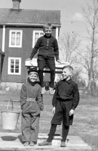 Bildtext: Tre glada pojkar