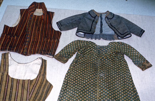Bildtext: Kolt. Den grönmönstrade barnklänningen är tyget av "kattun".