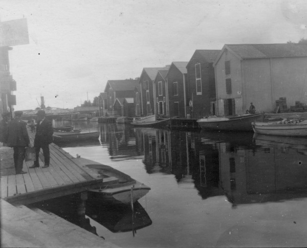 Bildtext: Anna Humbles gård i Åkre. Per Trolin, Marta Trolin, Erik Trolin. Enligt Lars Humble är det inte Anna Humbles hemgård. Det är Lars Nilsson med hustru Brita i mitten (kanske dotter Karin t v om Brita) på sin gård i Flatmo 3. Lars Nilsson var son till Nils Nilsson och Karin Persdotter i Åkre 2 (Ystegårn) och morbror till Anna Humble. Karin Persdotter var dotter till Per Jonsson i Oppigårn, Utnäs 1 och brorson till tidigare bonden Lars Jonsson i Ystegårn i Åkre. Trolins står till vänster.