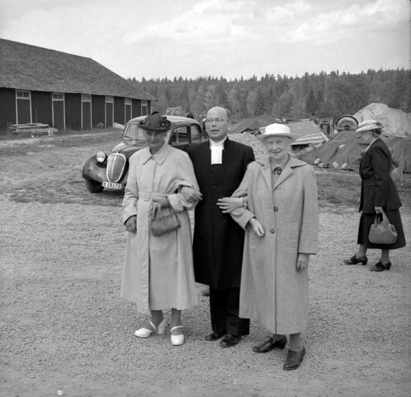 Bildtext: Ture Enge och två damer utanför Forsa kyrka