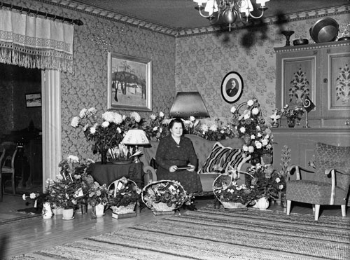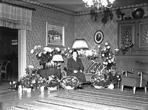 Bildtext: Karin Larsson i Kälkebo, 50 år. Kortet taget 8 dec. 1948.