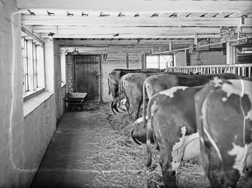 Bildtext: Per Berglövs, Sörviksta, för Nisse Bergström 29/3 1949. Från vänster: Stina Berglöv, Lars Erik Berglöv, Karin Johansson, Per Bertil Berglöv, Tjuren "Gilltorpskungen", Per Berglöv och Viktor Johansson.