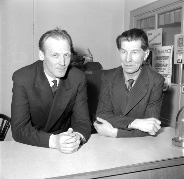 Bildtext: Jordbrukskassan (lokal i det så kallade Vita havet). Från vänster: Johan Persson, Sunnanbäck och Erik Johansson, Bäck
