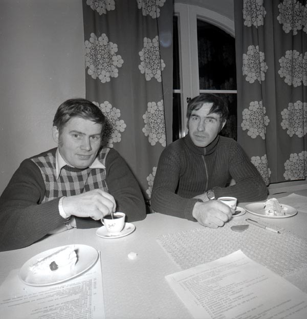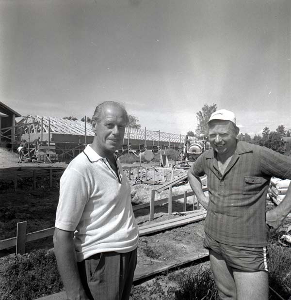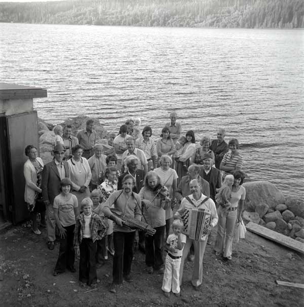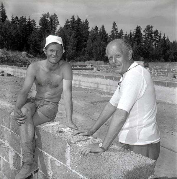 Bildtext: Till vänster Astor Andersson och till höger min morfar Bryngel Bryngelsson. Astors mamma, Frida Andersson, var syster med Bryngels fru, Julia Bryngelsson. En gissning är att fotot togs vid en avtackning på Vägverket, där både Astor och Bryngel arbetade. /Thomas Norrman (barnbarn till Bryngel). I mitten är Ture Jonsson i Sunnanbäck. Arbetade vid vägverket. /Elving Jonsson (son till Ture)