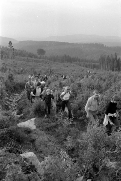 Bildtext: Främre rader tredje personen kan vara Åke Englund Näsviken. I mitten bakom första rader från vänster: Lena Lindh och Veronika Knittel. Damen närmast är Anny Mikaelsson.