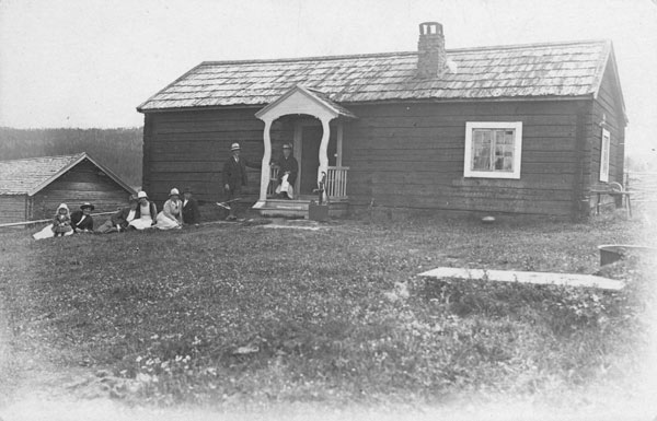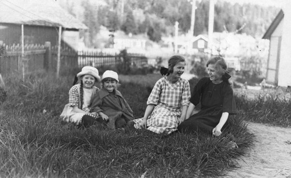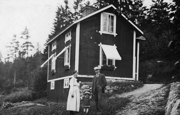 Bildtext: Från vänster: Margot och mamma Anna, Manne och Elma Norrby, Stina och Albin Öhgren och Mormor och Morfar (Sven Persson och Cecilia Jonsdotter) . Alsjövallen? 17 juli 1921
