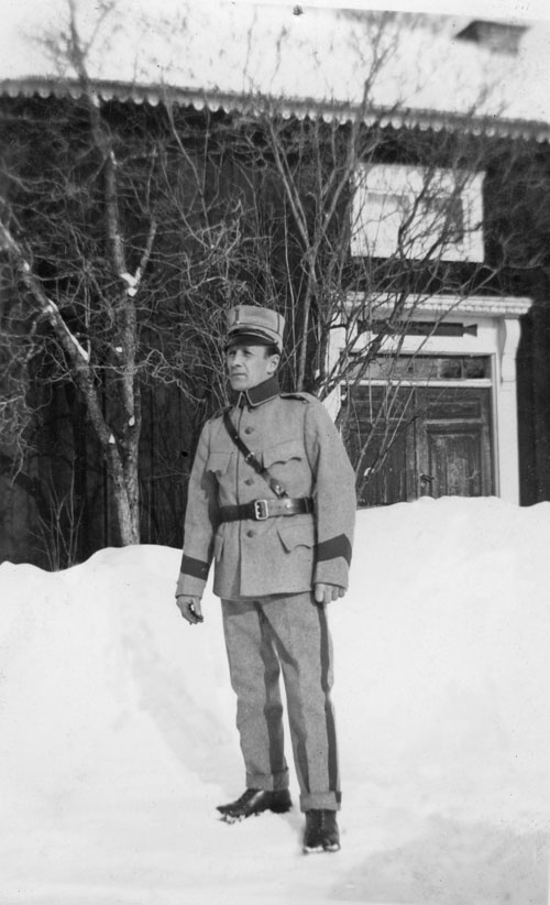 Sökord: militär, man ,Hed Motivkategori:män Id:2038 Fotograf: Fotoår: Bildnummer: alb-G-56 Förening: Forsa Sockens Hembygdsförening Land: SE Motivplats: Fränö Teknik: inskannat foto,6x9 cm, s/v Rättighet: Originalplats: (visas ej publikt)