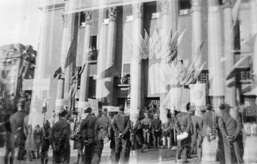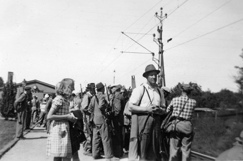 Bildtext: Mönstring av hästar vid Forsa kyrka