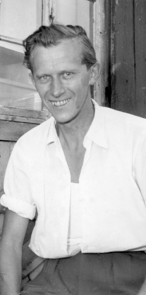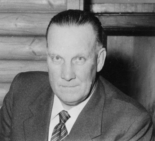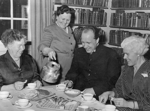 Bildtext: Bild från Näsvikens IK:s höstfest. Ordförande Lennart Lindström, längst till vänster, överlämnar utmärkelser till Einar Alfredsson, H. Pettersson och Einar Swahn. Lennart Lindström var ordförande under åren 1958-1961.