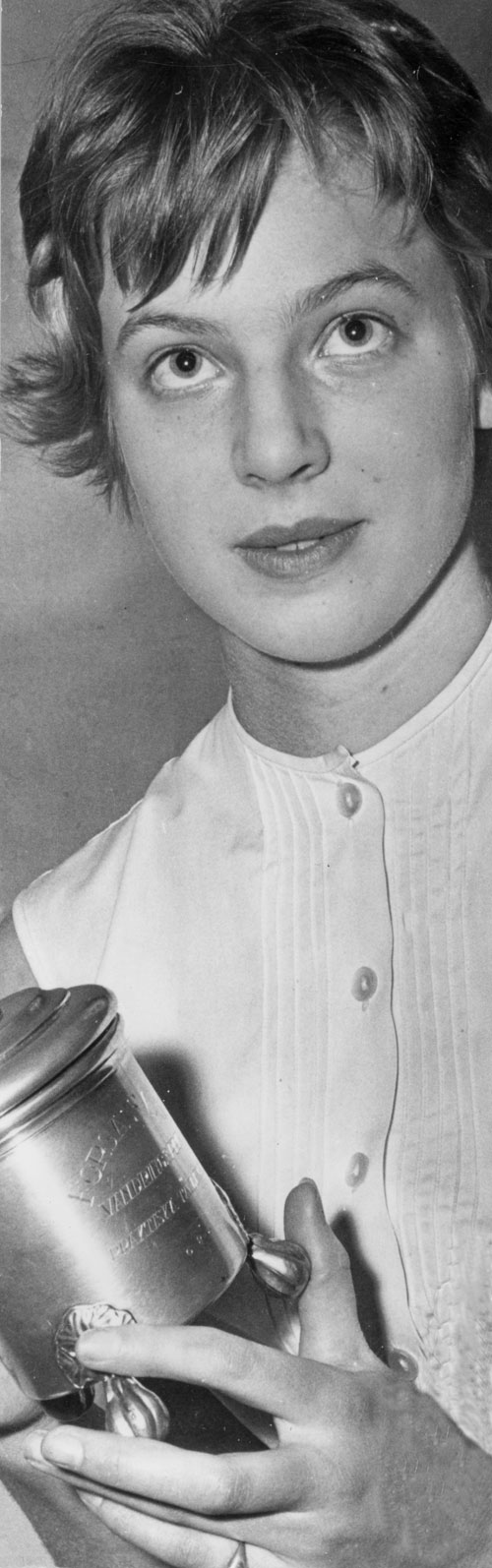 Bildtext: Eva Mikaelsson, född 1944, gift Persson, bosatt i Berglock 1:9. Fotot är publicerat i en artikel i HT 29/7 1961 där min mor Eva (1944-2009) och hennes pappa Mikael Larsson intervjuades om den Amerika-resa dom gjorde. /Helena Persson Ovcina