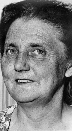 Bildtext: Anna-Lisa Schön vid vävstolen