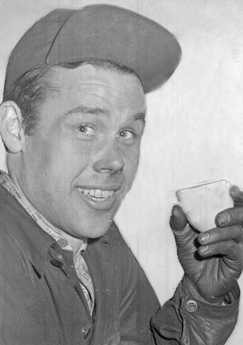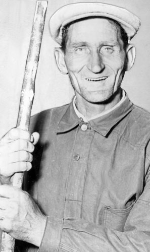 Bildtext: "Anders gårds Katrin" stickar strumpor