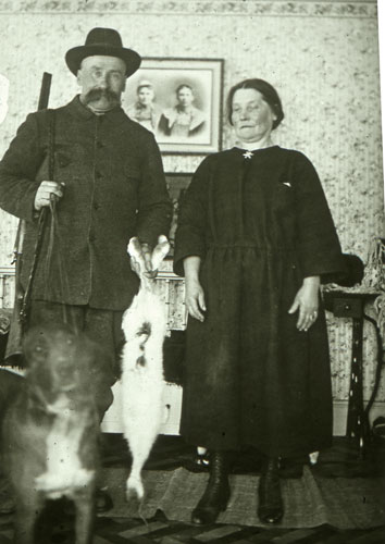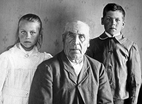Bildtext: Slåtter i Norrgården, Utnäs, 1922. Erik Trolin och dottern Anna. (Foto: Olof Trolin)