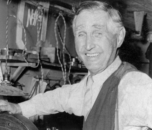 Bildtext: Alfred Lindqvist, lärare Hamre skola, Näsviken. Diktade på Färilamål under pseudonymen Movitz. Bodde i huset mittemot timmerrännan vid Hamre Skola med hustru Brita.