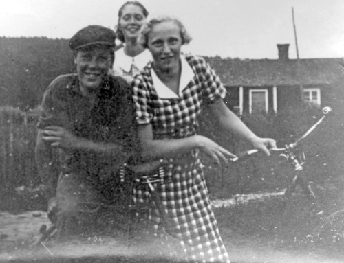 Bildtext: Herman Lindh har fått blommor. På bilden fr.vänster Helmut Kaulich, Evert Petersson, Lund, Göran Johansson, Herman Lindh, Ragnar Larsson, Arnold Olsson och P.Tärneborg
