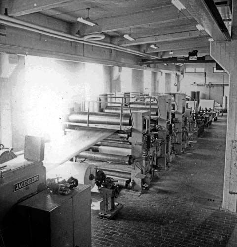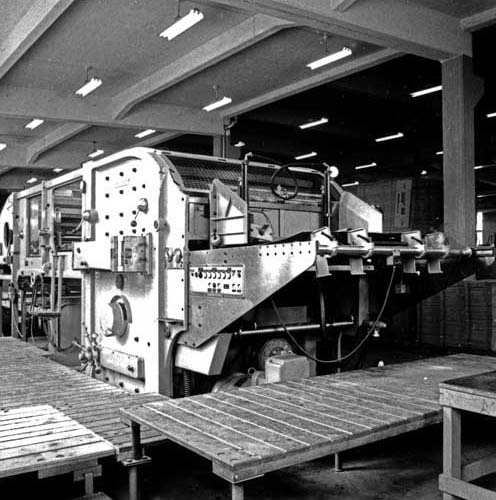 Bildtext: Bild tagen från Hillensberget ner mot övre slussen i Näsviken i Tamms kanal. Lägg märke till banvallen hitom kanalen. Den har ännu ej fått räls.