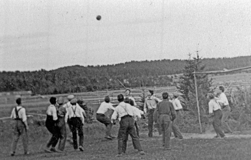 Bildtext: Samlade personer. Kvinnan till höger är Anna Eriksson gift med Valdemar Eriksson i Hallsta Hög