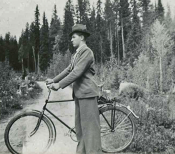 Sökord: Cykel, kostym,hatt,skogsväg, man Motivkategori:cykling. Id:5701 Fotograf: E. Stenmark Fotoår: Okänt Bildnummer: S-B-59.jpg Förening: Forsa sockens hembygdsförening Land: SE Motivplats: Forsa? Teknik: 6,5x9,5cm foto. SV/bild. 8-bitars gråskala Rättighet: Forsa. Sockenbilder Originalplats: (visas ej publikt)