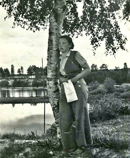 Bildtext: Fotbollsmatch på slåttervall i finkläder. Bilden troligen tagen på dåvarande fotbollsplanen på Tegelbacken i Wästanåker Hög. Numera igenväxt.