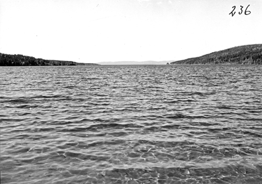 Bildtext: Södra Dellen vid inloppet till Näsviken, bilden troligen tagen från nuvarande badplatsen "Kaffegruset" vid Dellenbanan.