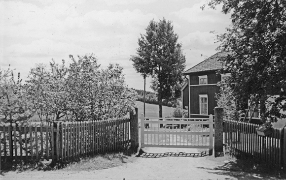 Bildtext: Fäbodvall i grönskan. Hallbo vid Norra Dellen, Hudiksvalls kommun.