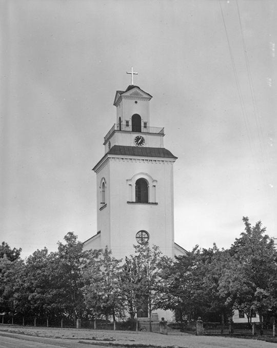 Kortet verkar vara taget ifrån kyrktornet antagligen före 1958, järnvägen är ej elektrifierad.