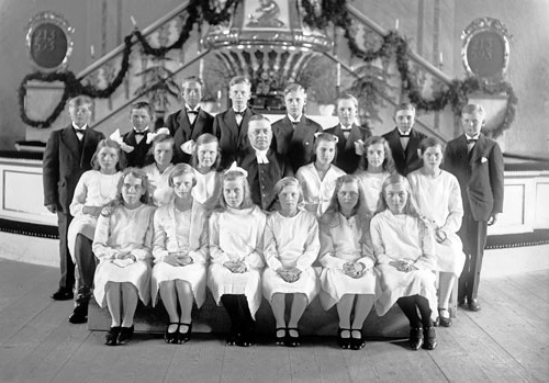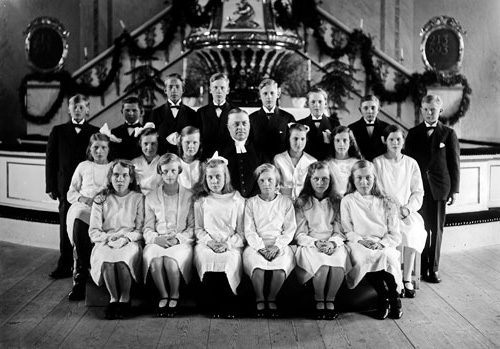 Sökord: präst, kyrka, pojkar, flickor, konfirmation Motivkategori:övrigt Id:6221 Fotograf: okänd Fotoår: före 1940 Bildnummer: for-A-28 Förening: Forsa Sockens Hembygdsförening Land: SE Motivplats: Gävleborg, Hudiksvall, Forsa Teknik: inskannad glasplåt 12x17 cm, s/v, 8-bitars gråskala .900dpi Rättighet: Forsa Sockens Hembygdsförening Originalplats: (visas ej publikt)