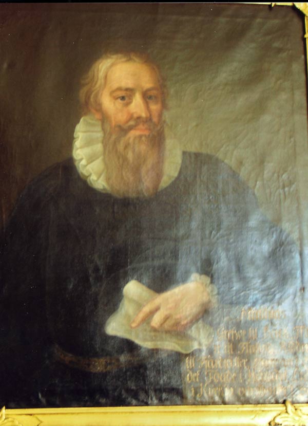 Bildtext: Mattias Olavi. Kyrkoherde i Forsa 1435-38 och domprost i Uppsala 1439- 54. Han var också enligt texten: "Grefve till Bäck, friherre till Finnflod, Riddare till Fjärdsätter, Lagman i landet och fogde i häradet". Mycket för en person.