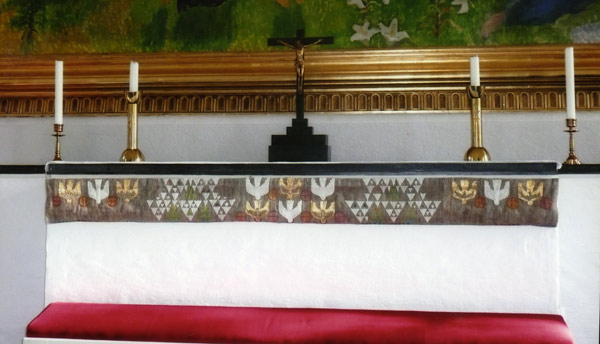 Sökord: Duk, bonad, Forsa, kyrka Motivkategori:Konstverk Id:6649 Fotograf: Gösta Svensson Fotoår: Nutids foto Bildnummer: GS-A1-122 Förening: Forsa sockens hembygdsförening Land: SE Motivplats: Gävleborg,Hudiksvall,Forsa Teknik: 10 x15cm foto. Färg Rättighet: Gösta Svensson Originalplats: (visas ej publikt)