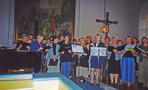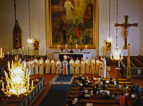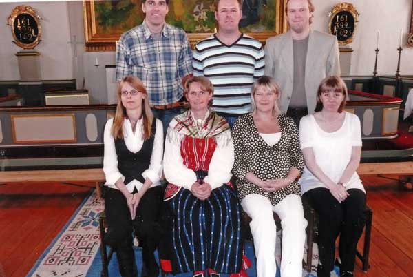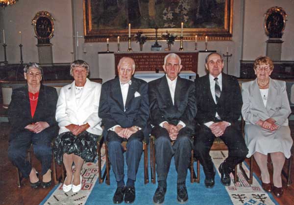 Bildtext: 1936 års konfirmander och 1981 års konfirmander 2006. Nummer två i främre raden är Stina Anderson, Trogsta och nummer fem är Ingrid Ovanfors, Trogsta. Ingrid är Stinas bror Johan Nilssons barnbarn.