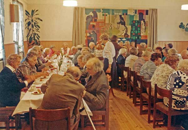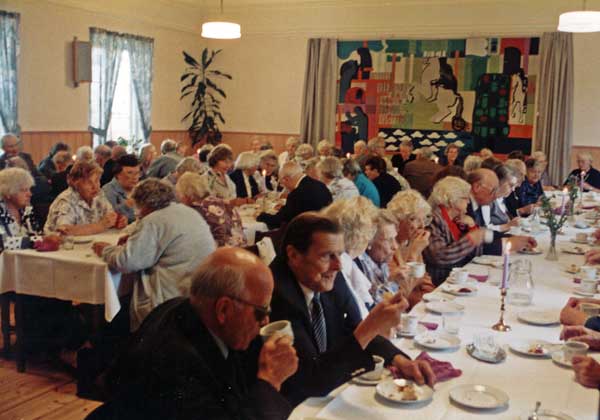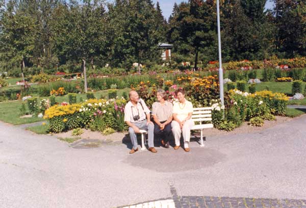 Bildtext: Personer på bänk. Gösta Svensson till vänster.