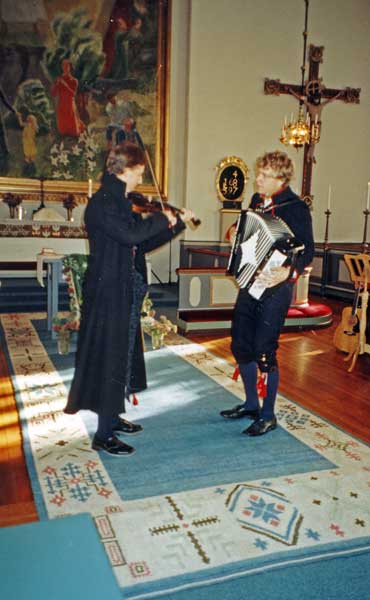 Bildtext: Forsa kyrka. Johan Trolin på fiol och Isak Bergström på dragspel.