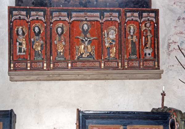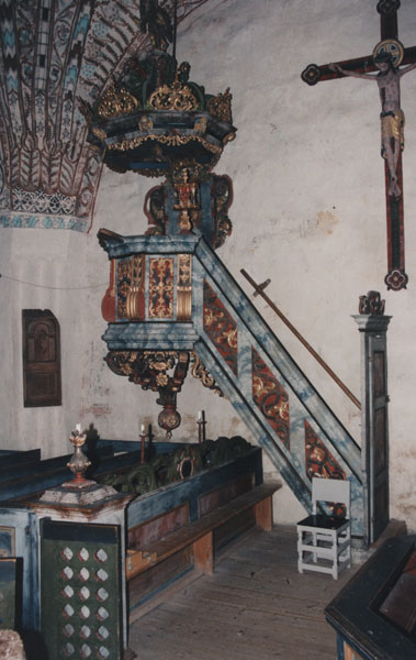Bildtext: Vackert utsmyckad dörr på Ytterlännäs gamla kyrka