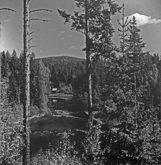 Bildtext: Lastbil med virke i Tövsättersskogen. Bakom står en Ford Anglia. En person som var med var Bo Holmqvist.