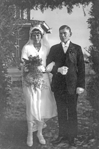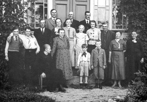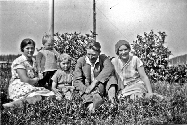 Bildtext: Släktträff på Ystigårn i Forsa. Längst fram: Lars Larsson och Edvin Svensson
