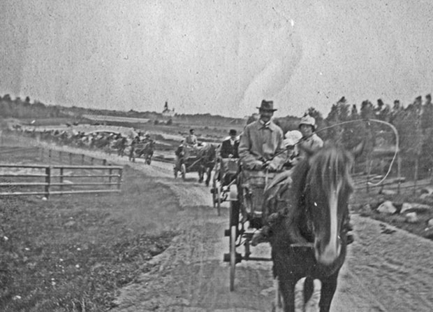 Sittande från vänster: Sara (Petters piga från Härjedalen), Hilding PH Lindh, Karin Andersson (Fredlund) Per Nilsson (PostPelle), Längst bak från vänster: Martin Bergström Tåsta (Ludvigs son), Linnéa Mattsson (Månsson), Nisse Eriksson och Lars Nilssson