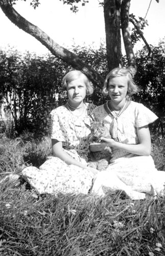 Sökord: flickor, natur, katt Motivkategori:barn Id:8080 Fotograf: Stenmark Fotoår: okänt Bildnummer: Fotorum-1-169 Förening: Forsa sockens hembygdsförening Land: SE Motivplats: Gävleborg, Hudiksvall, Forsa Teknik: Inskannat pappersbild,6 x 9 cm sv/8bit gråskala1700dpi Rättighet: Forsa sockens hembygdsförening Originalplats: (visas ej publikt)