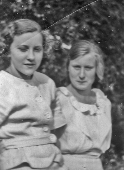 Bildtext: Två unga damer, trivsamt med en katt i knät