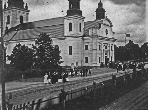Bildtext: Herr Johan Stenmark står det på kortet, det står något mer också men det går inte att urskilja vad. Det är i alla fall en trevlig handelsbod.