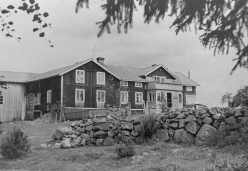 Personerna fr v: Svarvar Katrina Kvist, Svarvare Erik Johan Kvist f 1862. Anna Brita Frisk, Johan Frisk, Axel Jonsson, Olov Jonsson, Stina och Jonke Jonsson, Anna Jonsson, Britta Jonsson, Signe Jonsson och Emma Kvist, f 1886.