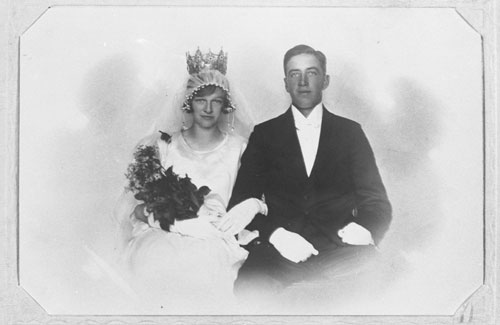 Bildtext: Personer fr v: Georg Norin, Hulda Norin, Katarina Halvarsson, Maja Hallin. Framför föräldrarna står Valter Norin.
