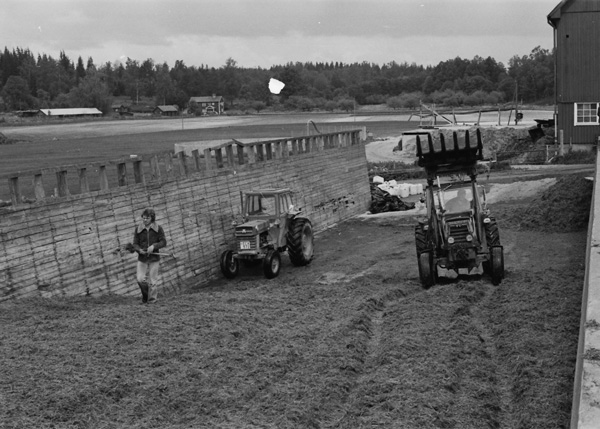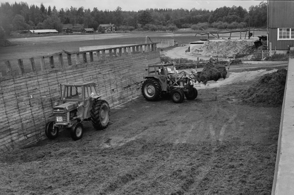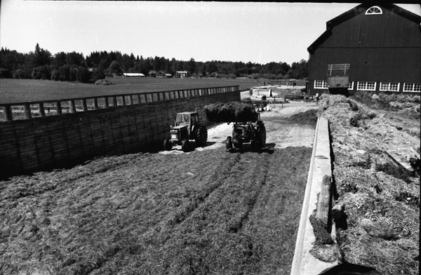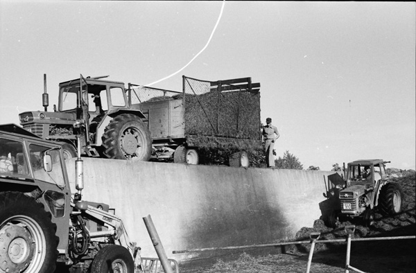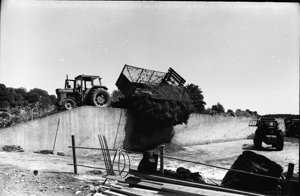 Sökord: traktor vagn grönmassa ensilage plansilo foder skörd Motivkategori:jordbruk Id:3448 Fotograf: Carl-Axel Bröme Fotoår: 1976 Bildnummer: CB3149 Förening: Odensvi hembygdsförening Land: SE Motivplats: Kalmar, Västervik, Odensvi, Ogestad Teknik: Skannat sv/v negativ Rättighet: Originalplats: (visas ej publikt)